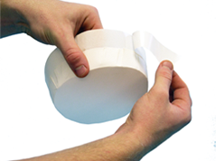 用普通海綿加水潤濕,擠出多余的水分直到海綿變濕。在大壩的Aquasol水溶性膠帶部分輕輕點拭海綿。濕潤的海綿會重新激活膠水,確保空氣滲透性為零。